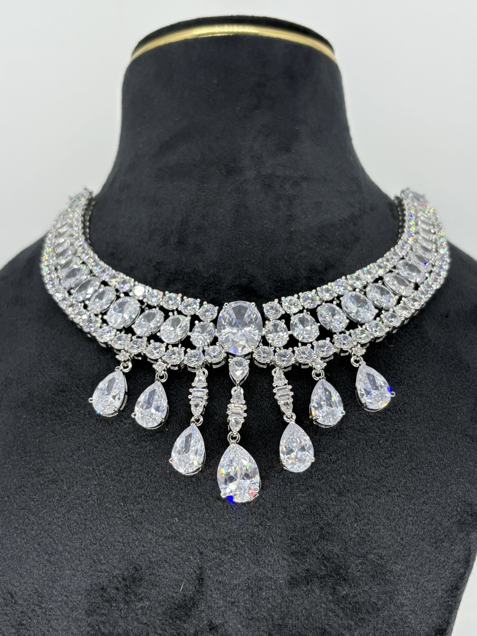Crafted with premium American Diamonds, this stunning piece radiates brilliance and charm. Perfect for parties, weddings, or daily glam, it adds a touch of luxury without the heavy price tag. Lightweight, durable, and timeless — a must-have for your jewellery collection.